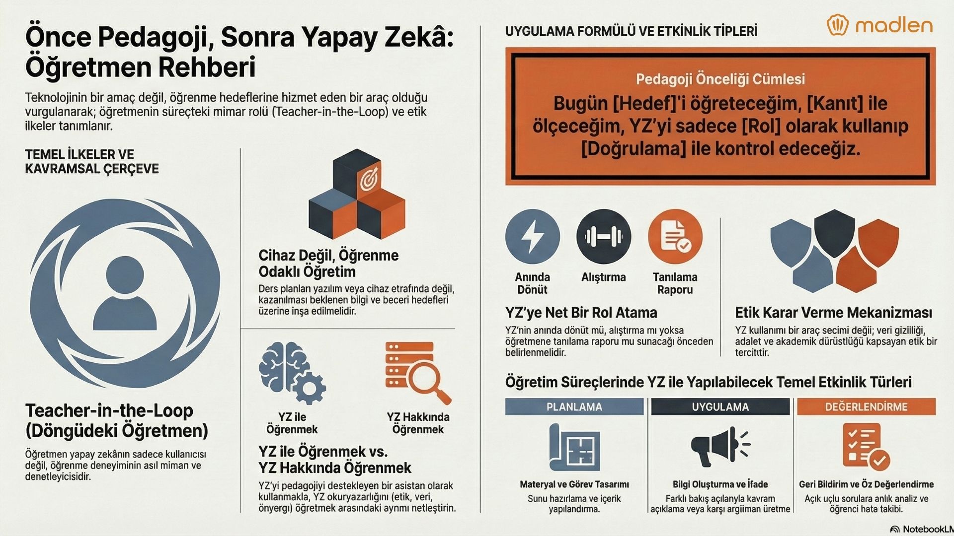 Madlen olarak, yapay zekâyı eğitimin yerine geçen bir unsur olarak değil; öğretmenin rehberliğini güçlendiren ve öğrencinin keşif yolculuğunu zenginleştiren bir "düşünme ortağı" olarak görüyoruz. Sınıflarımızda teknolojiyi pedagojik bir vizyonla harmanlayarak, her öğrencinin potansiyeline dokunan daha adil ve verimli bir gelecek inşa etmeye kararlıyız.
